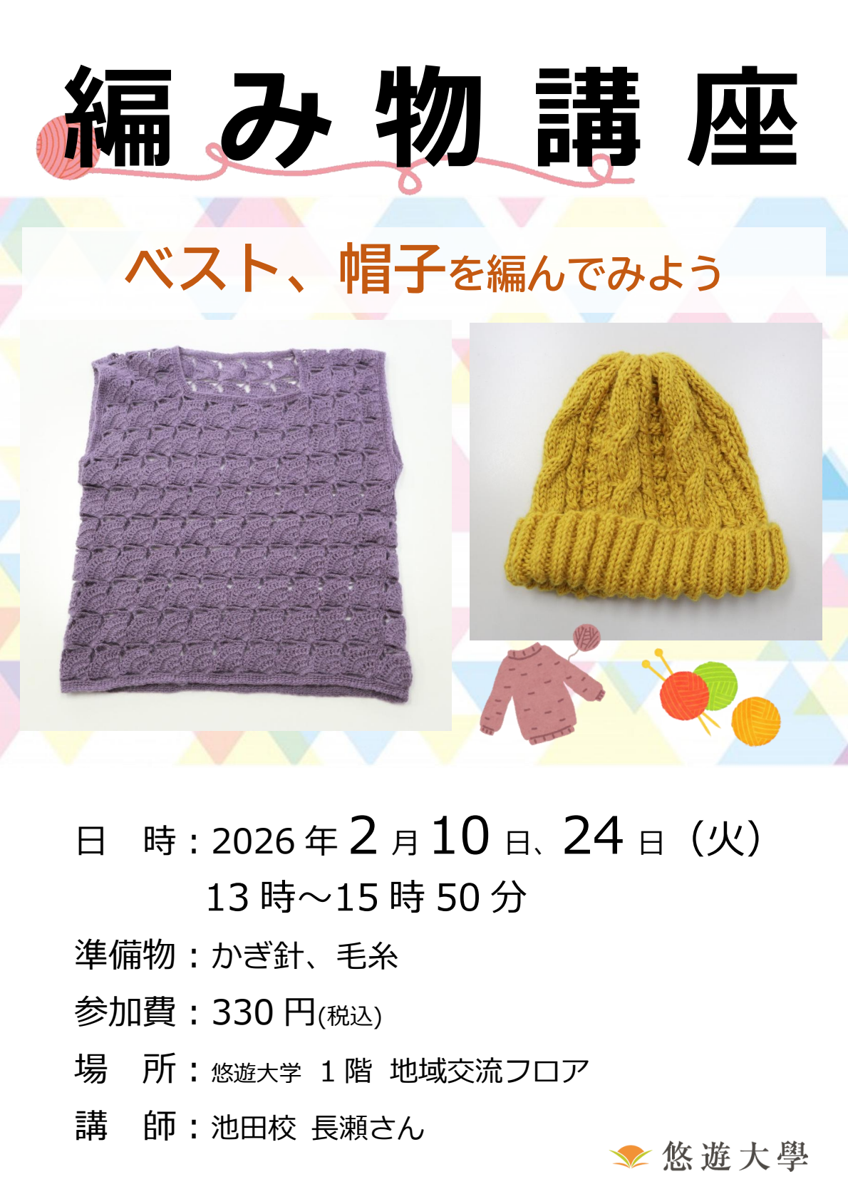 編み物は自分で積み重ねたものが形になる楽しさを実感できるのが魅力。大勢でワイワイ話しながら編み物しませんか。